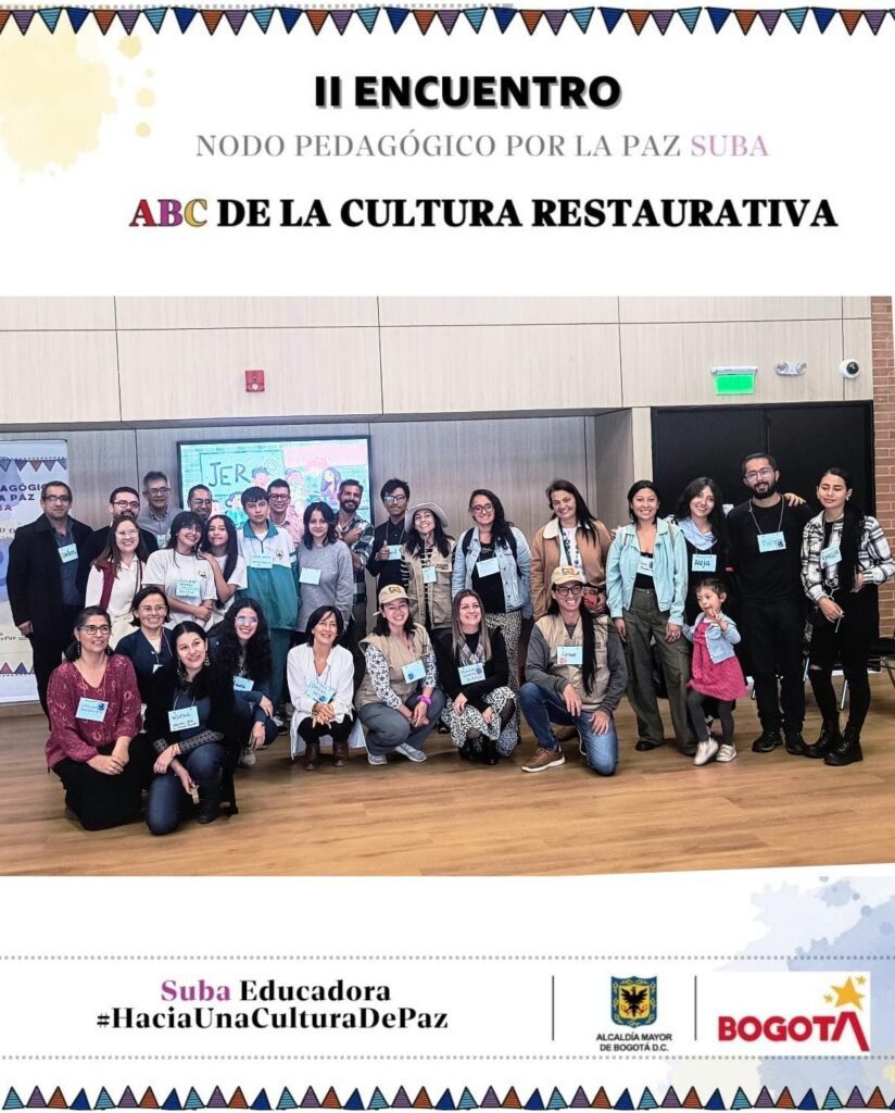 CULTIVAR PAZ participó el 15 de agosto en el segundo encuentro del nodo pedagógico justicia escolar restaurativa en la localidad de suba con una ponencia denominada El ABC de la Justicia Restaurativa. Participaron docentes, estudiantes y conciliadores en equidad. Los docentes MARTHA HERNÁNDEZ y CARLOS RAMÍREZ, diplomados con CULTIVAR PAZ en 2023, son los impulsores de este Nodo que está transformando los imaginarios de la escuela en torno a la convivencia, la justicia y la paz.