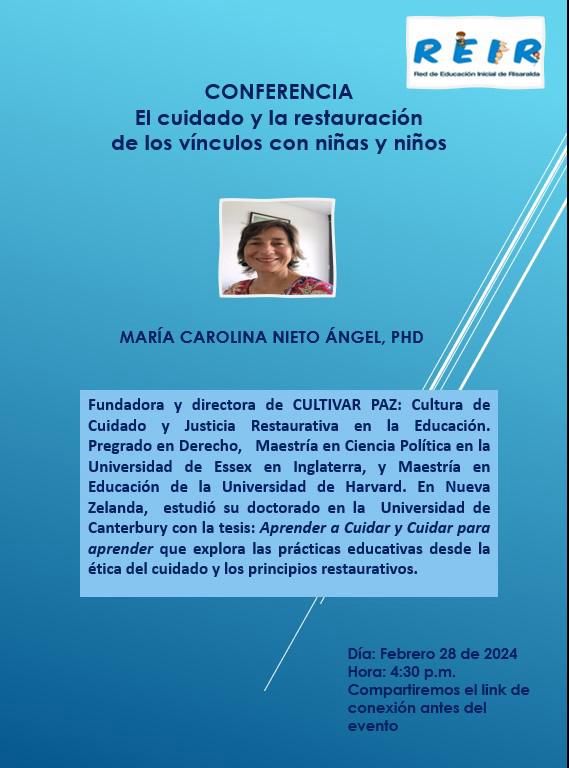 El miércoles 28 de febrero nos encontramos de forma virtual con más de 40 docentes de la RED DE EDUCACIÓN INICIAL DE RISARALDA REIR en un espacio agradable de introducción a la ética del cuidado y la justicia restaurativa que permitió generar preguntas interesantes para pensar y cuestionar prácticas cotidianas en el entorno escolar.