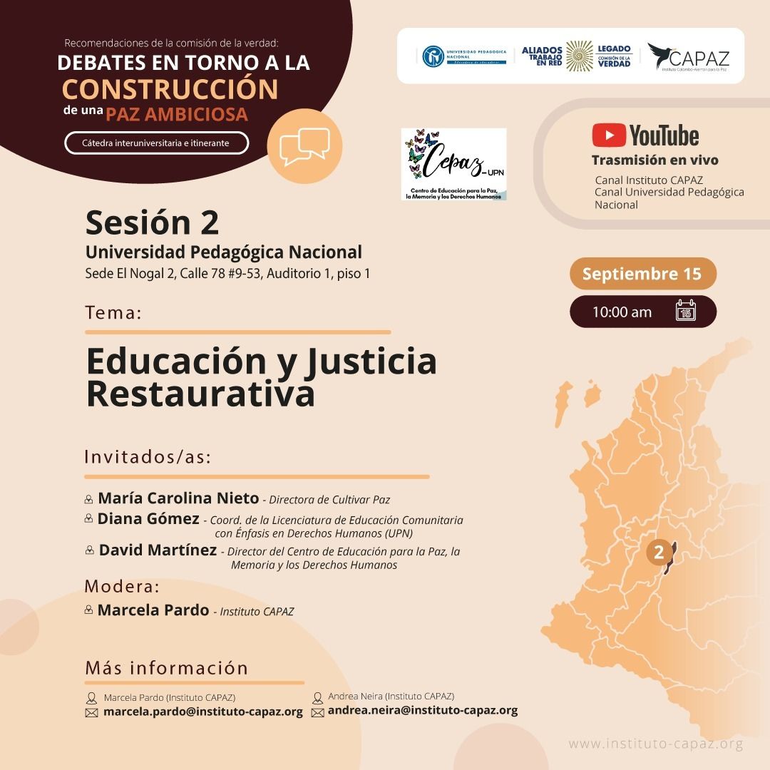 Recomendaciones de la Comisión de la Verdad: debates en torno a la construcción de una paz ambiciosa, convocado por CEPAZ, Centro de Estudios para la Paz de la Universidad Pedagógica Nacional y CAPAZ: Centro Colombo Alemán para la Paz.