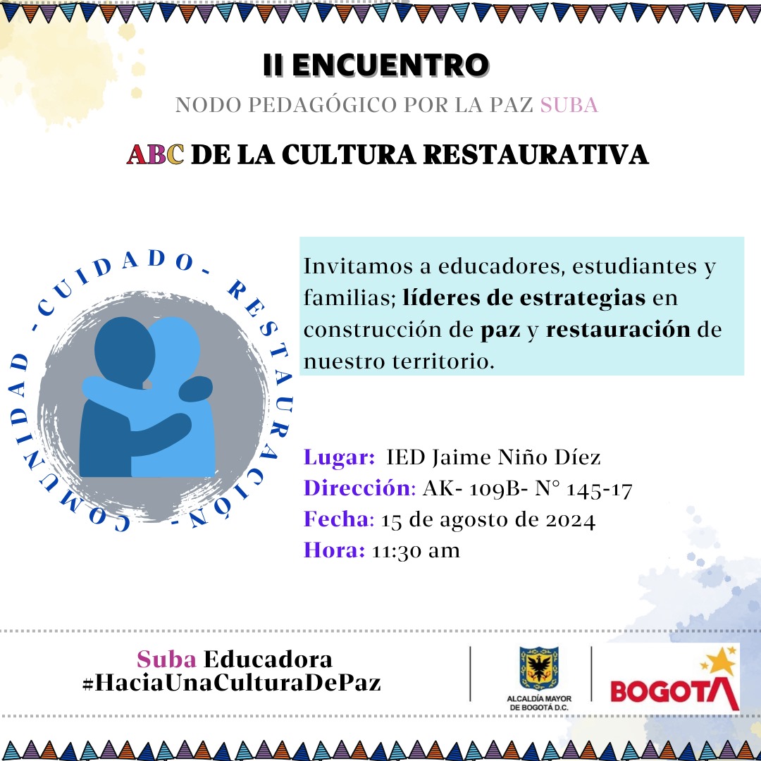 Acompáñanos el próximo jueves 15 de agosto en el II Encuentro de Formación del Nodo Pedagógico por la Paz - Suba