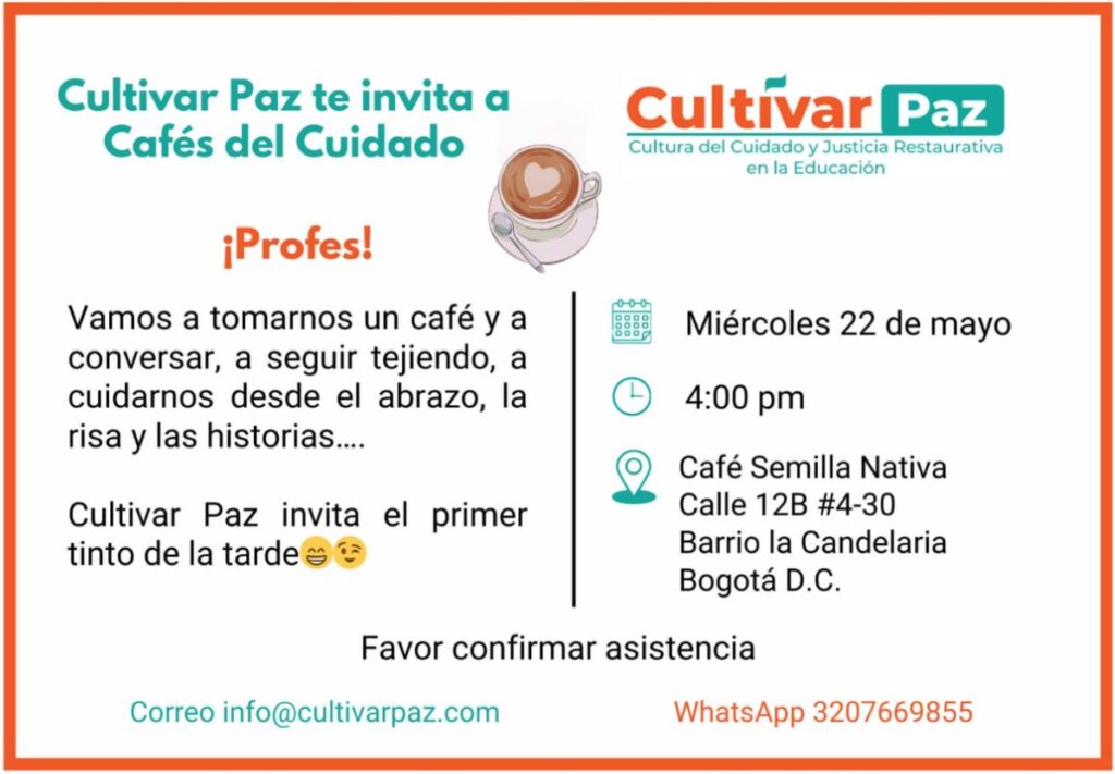 Retomamos los “Cafés del Cuidado” para celebrar el encuentro con los y las docentes de la planta distrital que fueron diplomados por CULTIVAR PAZ en 2023. Nos encontramos en el Café Semilla Nativa en la Localidad de La Candelaria en Bogotá para compartir un espacio amable de diálogo, y socializar los avances en la promoción de ambientes de cuidado y restaurativos.